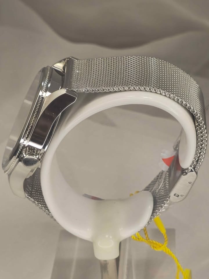 La correa, también fabricada en acero inoxidable, garantiza durabilidad y comodidad. Este reloj está diseñado para acompañarte en tu día a día sin perder elegancia.