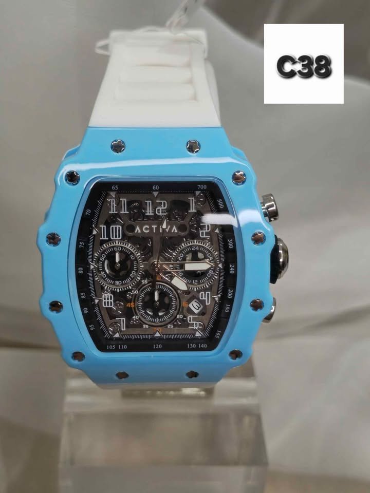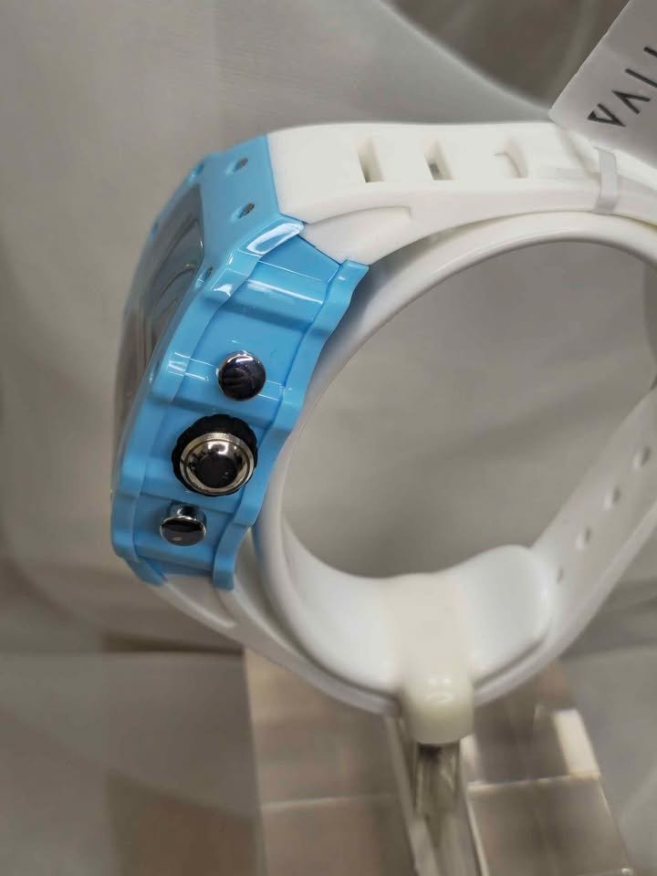 Descubre el Invicta Activa Hombre 44.3mm, un reloj que combina diseño sofisticado y funcionalidad a un precio accesible. Su carcasa azul claro y correa blanca evocan la estética de relojes de alta gama como Richard Mille, pero con una oferta incomparable.